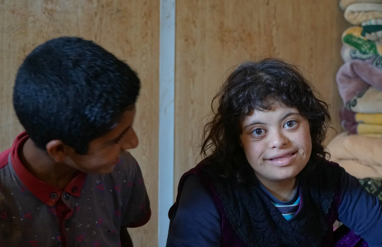 Shahed and her neighbor Fatima (age 11). Fatima lives with Down syndrome.